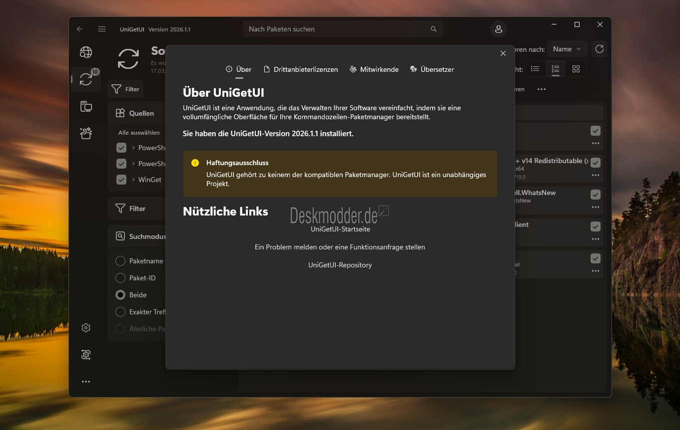 Noch einmal zur Erinnerung: „Marti hat UniGetUI (damals WinGetUI) entwickelt und es wird jetzt von Devolutions weitergeführt. Das Projekt bleibt kostenlos, Open Source und unterliegt der MIT-Lizenz.“