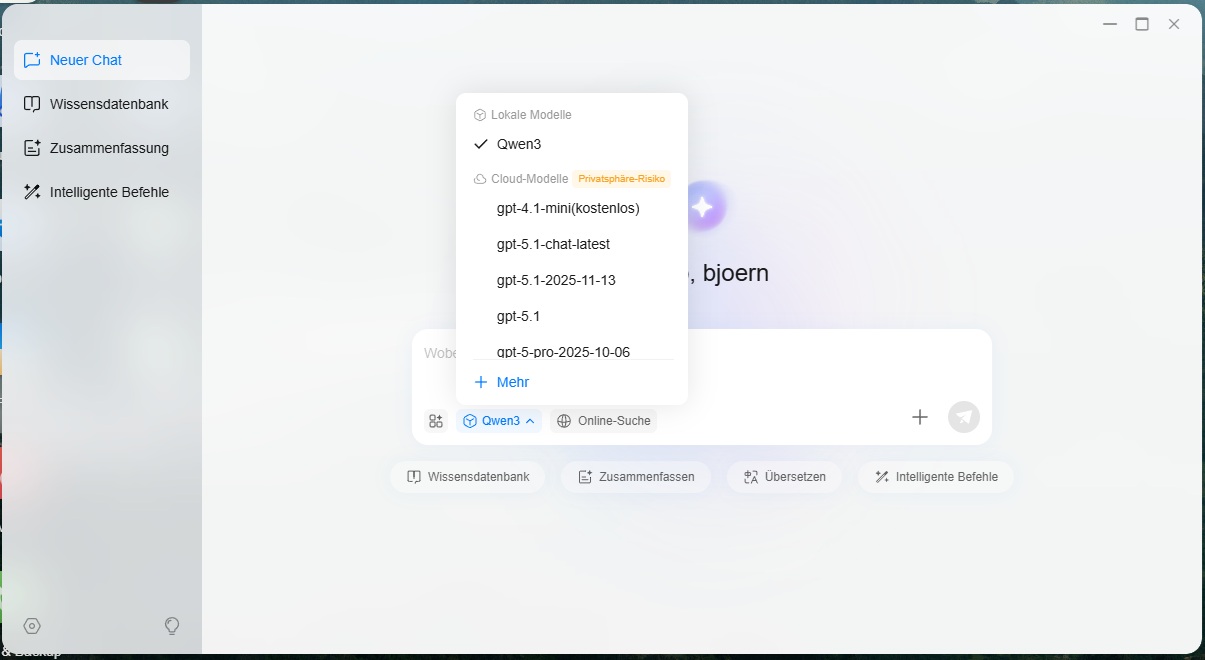 Bei komplexeren Aufgaben, etwa der Analyse größerer Dokumentensammlungen, zeigt sich jedoch ein differenzierteres Bild. Lokale Modelle arbeiten zwar datenschutzfreundlich, erreichen aber weder die Geschwindigkeit noch die Präzision moderner Cloud-Dienste. Zudem treten vereinzelt Ungenauigkeiten auf, die im produktiven Einsatz berücksichtigt werden müssen. Dennoch bleibt der Ansatz interessant. Wer bewusst auf externe Dienste verzichten möchte oder muss, erhält hier eine funktionierende Alternative, die ohne zusätzliche Einrichtung direkt nutzbar ist.