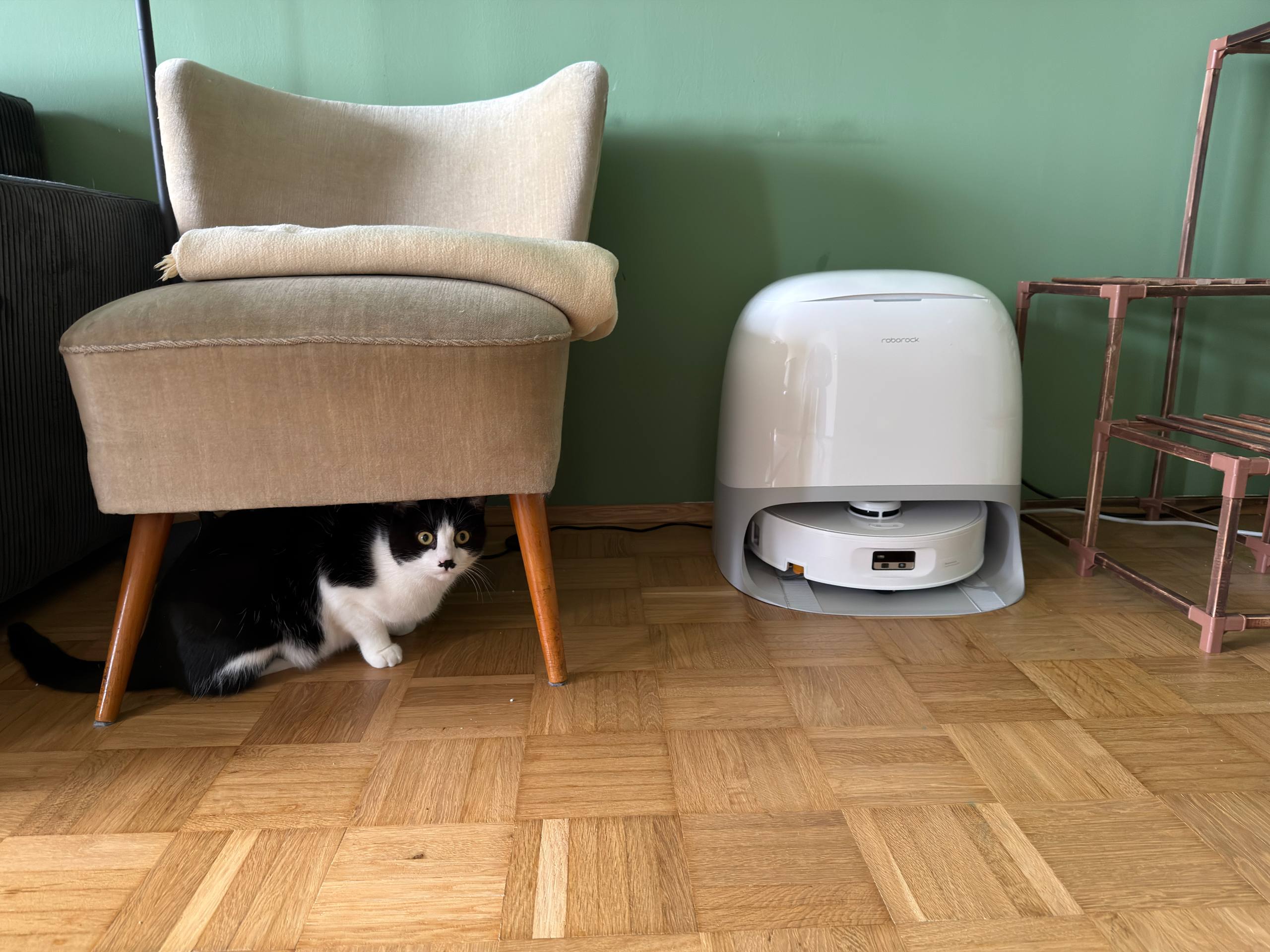 Grenzen gibt es aber trotzdem. Eingetrockneter Schmutz geht nicht immer restlos weg. Hier hilft es, die Stelle vorher einzuweichen oder notfalls klassisch per Hand nachzuarbeiten. Das ist kein Ausfall, sondern eher die Erinnerung daran, dass auch ein teurer Wischroboter keine hochgelobte Lösung gegen wochenalte Flecken ist. Positiv ist wiederum, dass die Station viel Arbeit abnimmt. Das automatische Reinigen des Mopp-Systems spart im Alltag spürbar Zeit. Trotzdem bleibt etwas Pflege nötig und ganz wartungsfrei ist das System nicht.