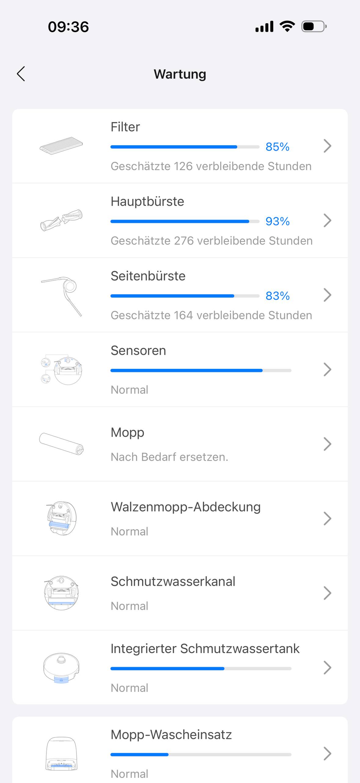 Roborock bewirbt den Qrevo Curv 2 Flow trotz Walzensystem als vergleichsweise pflegeleicht. Auf der Produktseite ist von einfacher Wartung die Rede, außerdem sind mehrere Komponenten wie Walzenmopp, Schmutzwasserkanal und integrierter Schmutzwassertank zum Reinigen oder Austauschen entnehmbar. Der Roboter nimmt einem viel Arbeit ab, aber eben nicht alles. Wer dauerhaft gute Ergebnisse will, muss das Gerät und die Station regelmäßig reinigen. Besonders in einem Haushalt mit Tierhaaren und häufiger Wischfunktion sollte man die Wartung nicht zu lange aufschieben. Das ist kein Kritikpunkt, sollte vor dem Kauf aber klar sein.
