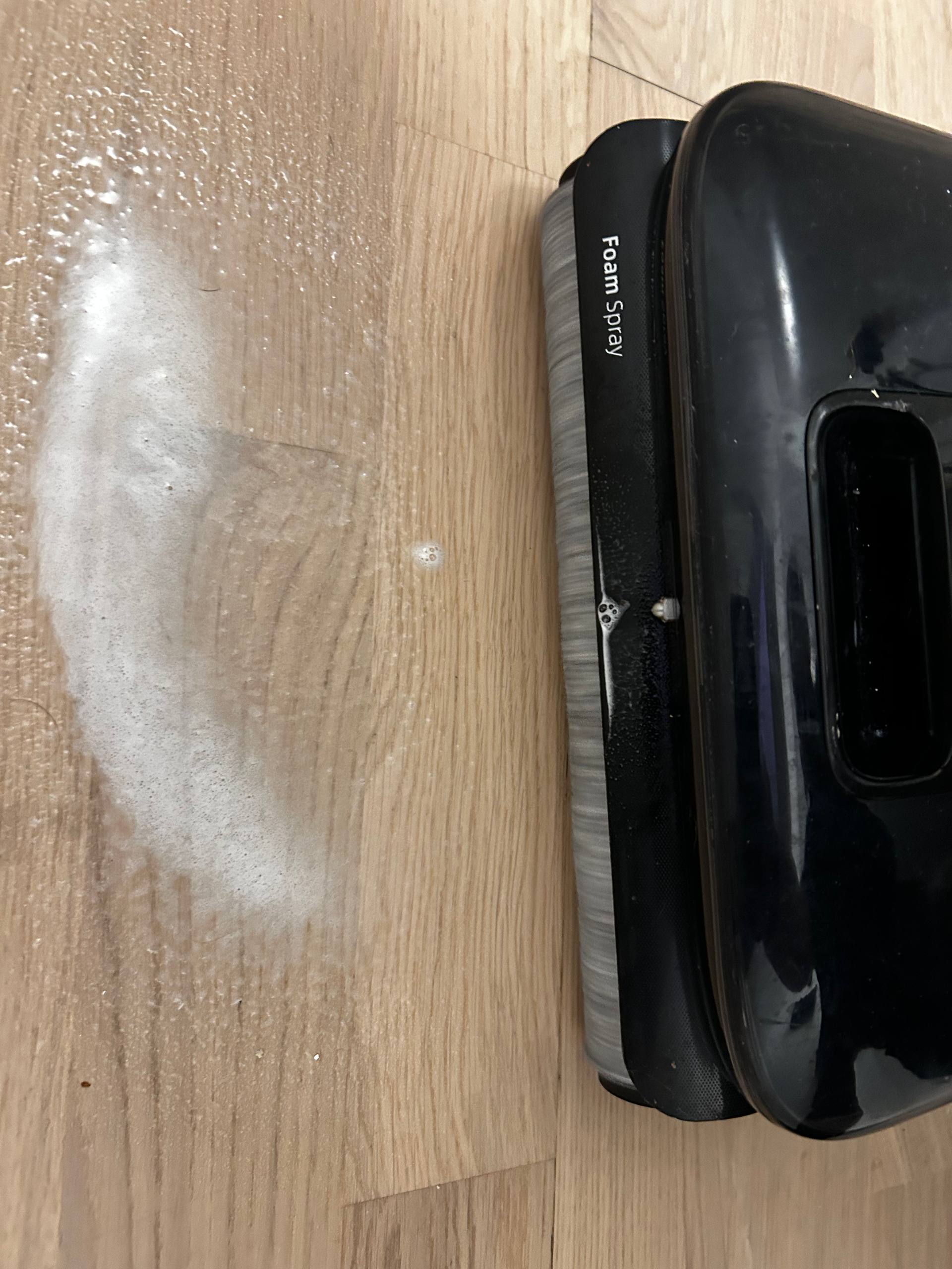 Im Praxistest zeigt sich schnell, dass der Roborock F25 ACE Pro seine Stärken vor allem bei anspruchsvolleren Reinigungsaufgaben ausspielt. Die Kombination aus intelligenter Schmutzerkennung und automatischer Leistungsanpassung sorgt dafür, dass das Gerät effizient arbeitet, ohne unnötig Energie oder Wasser zu verschwenden. Der entscheidende Unterschied liegt in der Schaumdüse. Eingetrocknete Flecken, die bei vielen Geräten lediglich verschmiert werden, lassen sich hier gezielt einweichen und anschließend aufnehmen. Das funktioniert im Alltag zuverlässig und reduziert den Bedarf an zusätzlicher manueller Nacharbeit deutlich.