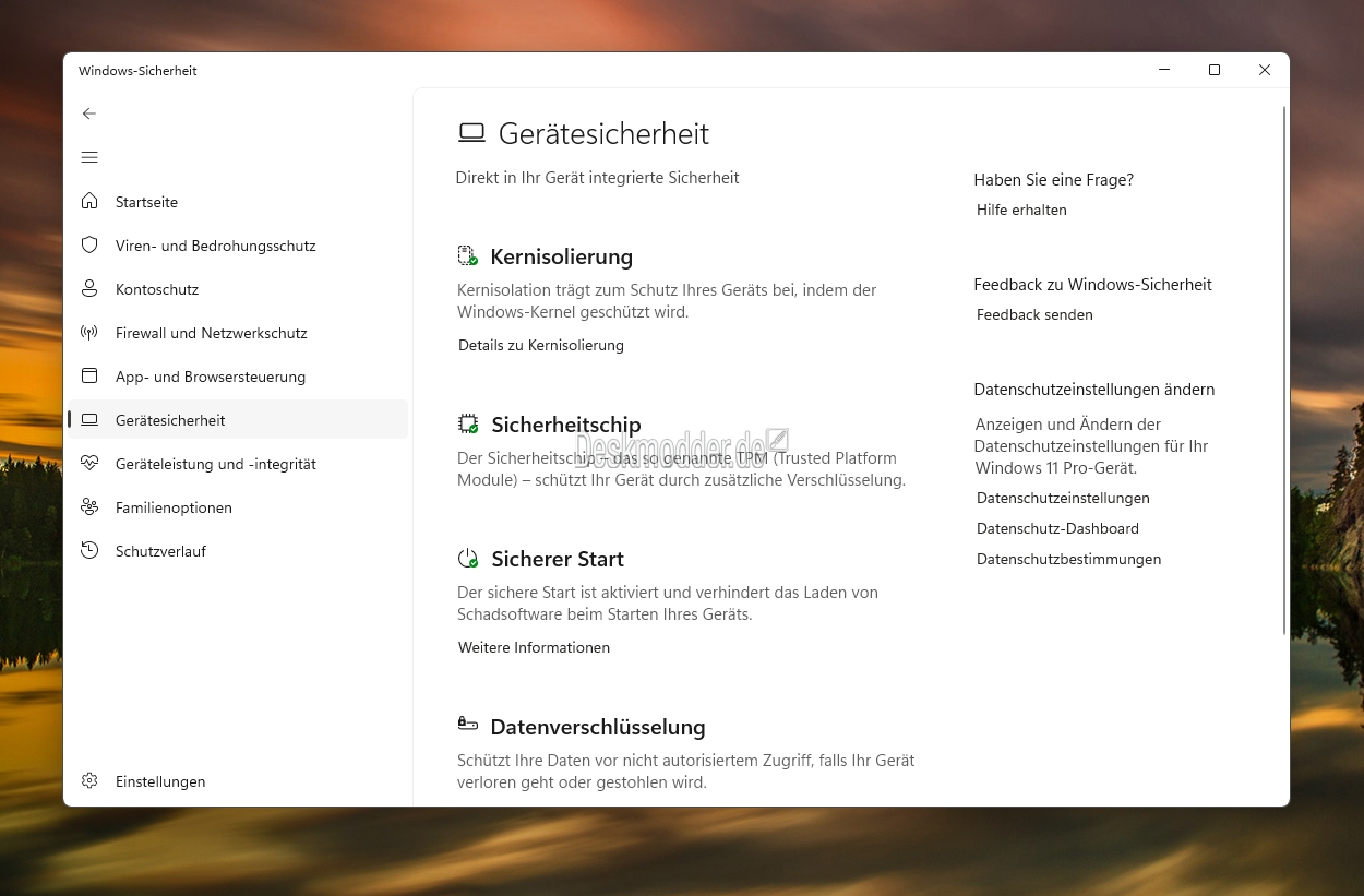 Bei den Heim-Geräten (Home / Pro) wird dieser Zustand automatisch angezeigt. Bei verwalteten Firmengeräten muss dies von den Administratoren erst aktiviert werden.