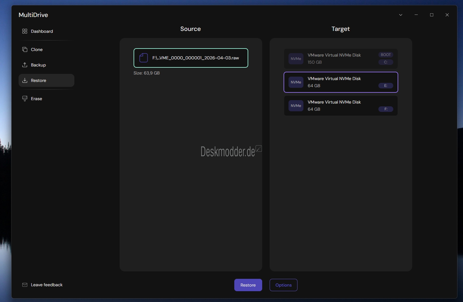 MultiDrive ist ein kostenloses (und auch portables) Programm zum Erstellen und Wiederherstellen von Backups. Festplatte klonen, oder auch komplett löschen. MultiDrive lässt sich mit einer grafischen Oberfläche, aber auch als CLI-Version, wer es lieber mag, nutzen.