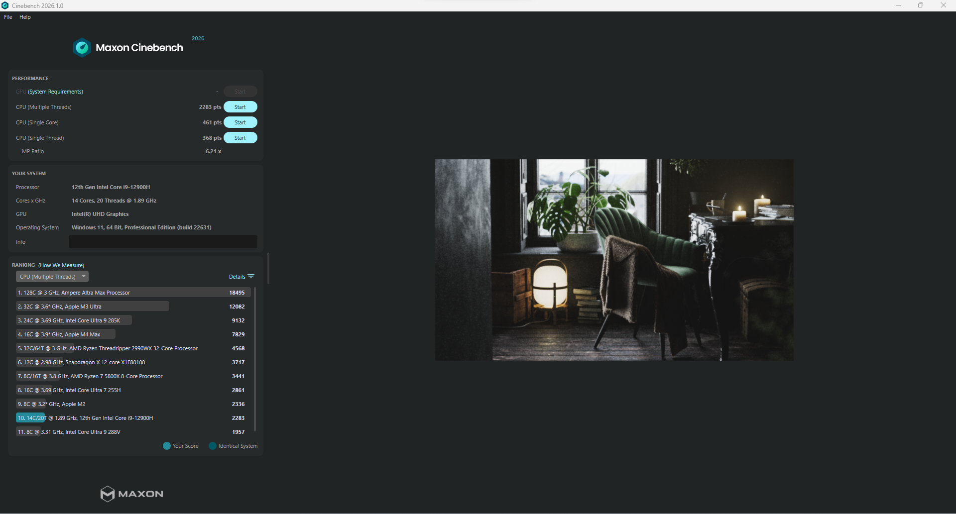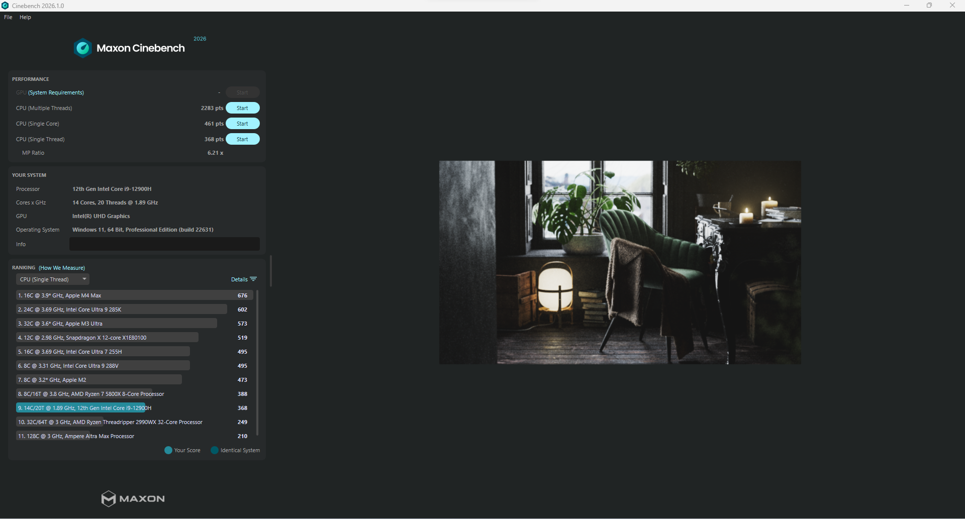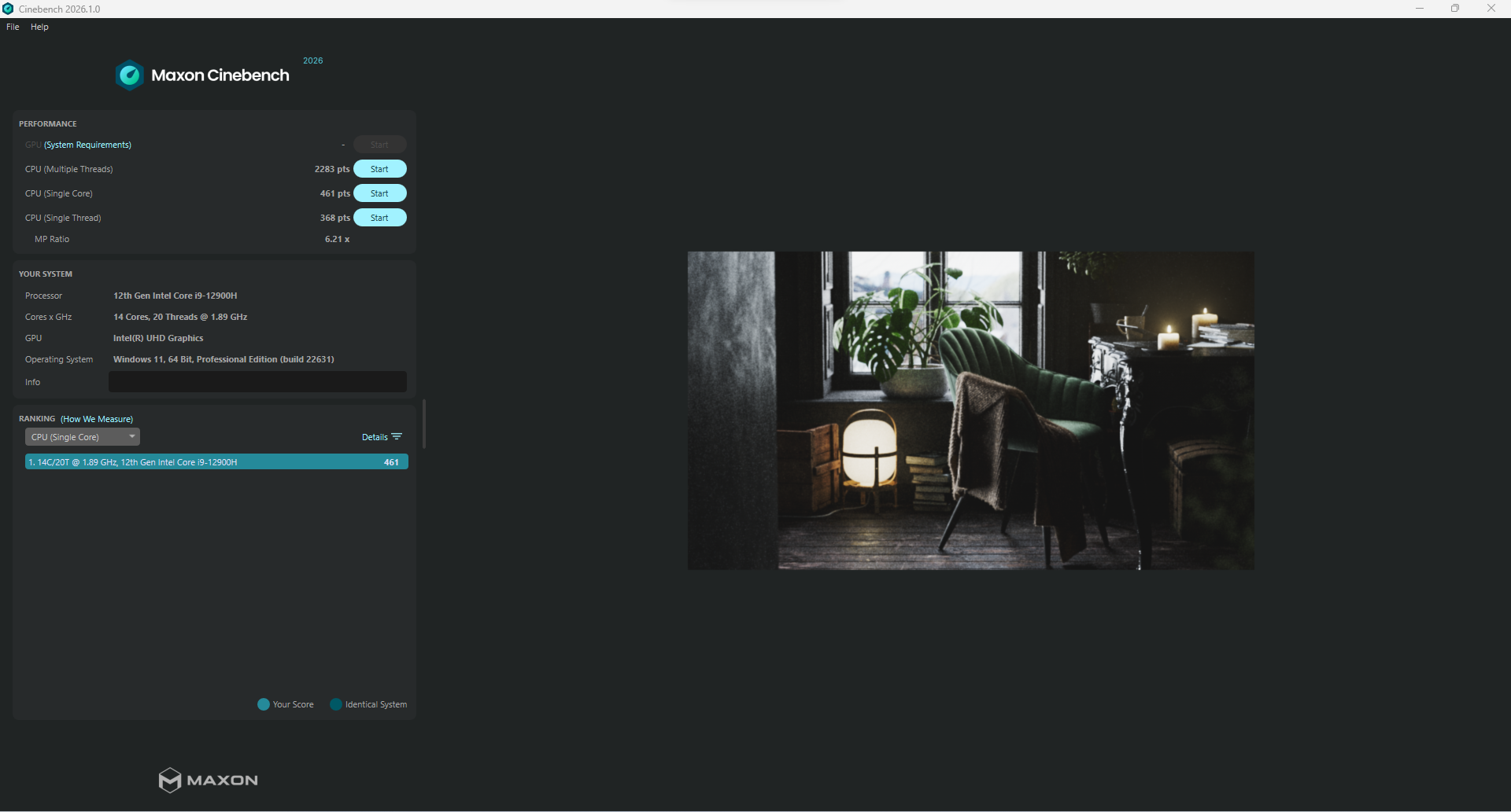 Im Kern arbeitet ein Intel Core i9-12900H mit 14 Kernen und 20 Threads. Das ist zwar kein brandneuer Chip mehr, aber nach wie vor eine sehr leistungsfähige CPU, die in vielen Szenarien mehr als ausreichend Reserven bietet. Unser Testgerät kommt mit 16 GB DDR4-RAM, konkret DDR4-3200, allerdings nur im Single-Channel-Betrieb. Genau hier verschenkt das System bereits etwas Potenzial, was man in bestimmten Anwendungen auch merkt.