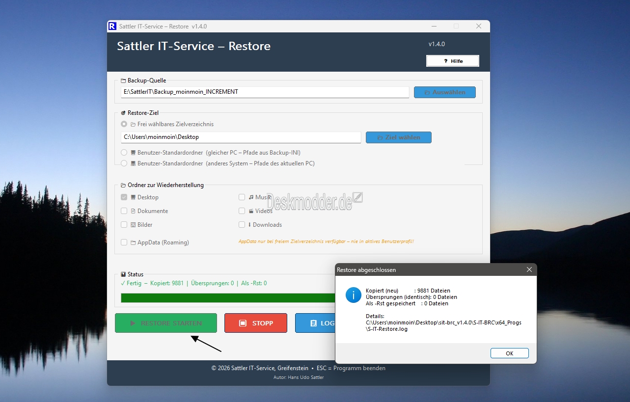 Ich mag solche kleinen Programme. Teste ich immer wieder gerne. Schön wäre noch, wenn er das Programm nicht nach einem Fenster (z.B. Backup) komplett schliessen würde, sondern zum Hauptfenster zurückkehrt.