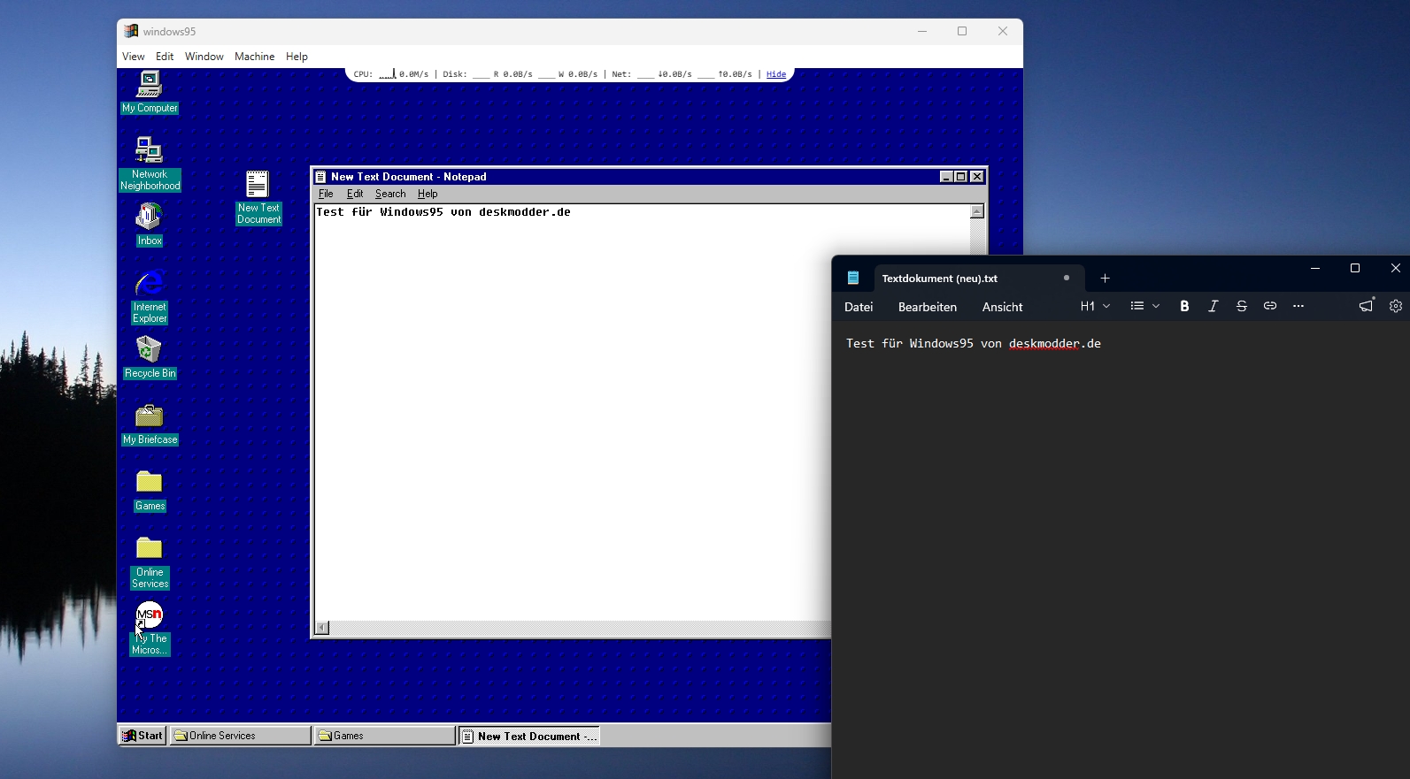 Wer mal eine Minute Retro erleben möchte, ohne Windows 95 in einer VM zu installieren, kann sich Windows95 durchaus mal anschauen