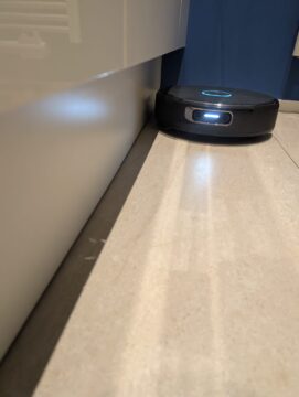In der Praxis leistet der Roboter hervorragende Arbeit: Selbst ohne ausfahrbare Seitenbürste wird Schmutz in den Ecken effektiv erfasst. Beim Wischen überzeugt der ausfahrbare Mopp, der extrem nah an Kanten und Wände heranreicht und dort zuverlässig reinigt.