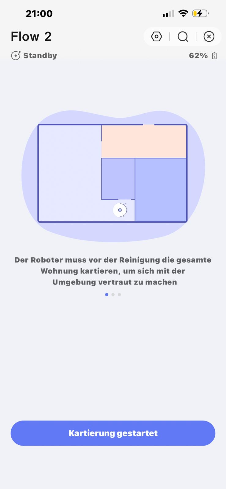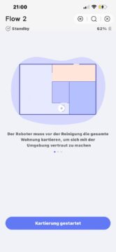 Im nächsten Schritt erfolgt der Download der Narwal-App, die sowohl für Android als auch iOS in den jeweiligen Stores bereitsteht. Der Installationsprozess inklusive Kontoerstellung und Ersteinrichtung verlief absolut reibungslos – der Roboter wurde sofort erkannt und war schnell ins WLAN-Netzwerk eingebunden. Direkt im Anschluss fordert die App dazu auf, die erste Kartierung zu starten. Das ist wenig überraschend, da eine Karte die Grundvoraussetzung für alle Reinigungsfunktionen darstellt.