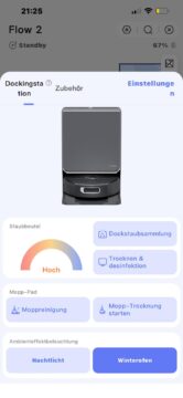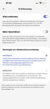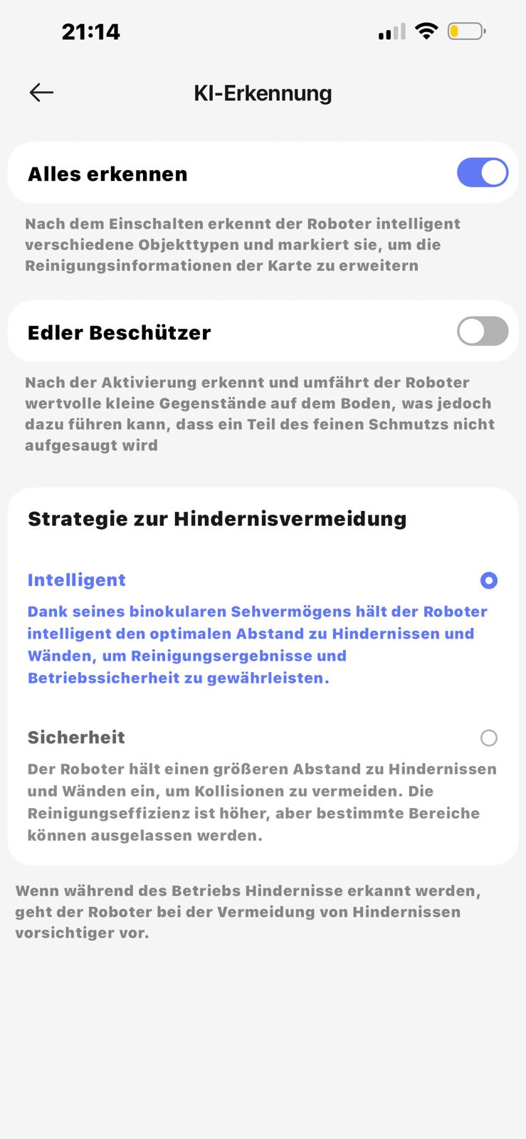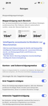 Nachdem die Karte dank LiDAR-Technologie – trotz des fehlenden Turms – schnell und zuverlässig erstellt wurde, habe ich mich durch die App-Einstellungen gewühlt. Dabei schwankte mein Eindruck zwischen echtem Staunen und leichtem Schmunzeln.