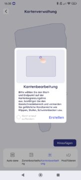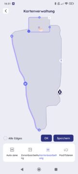 Nach der Kartierung bietet das System Funktionen an, die eine flexible Anpassung des Arbeitsbereichs ermöglichen. Eine praktische Option ist dabei die nachträgliche Veränderung von Grenzen, wodurch eine vollständige Neukartierung des Gartens bei kleinen Korrekturen entfällt.  Besonders hervorzuheben ist die detaillierte Kantenbearbeitung. Hier lässt sich für verschiedene Abschnitte individuell festlegen, wie weit der Roboter über die virtuelle Grenze hinausfahren soll.