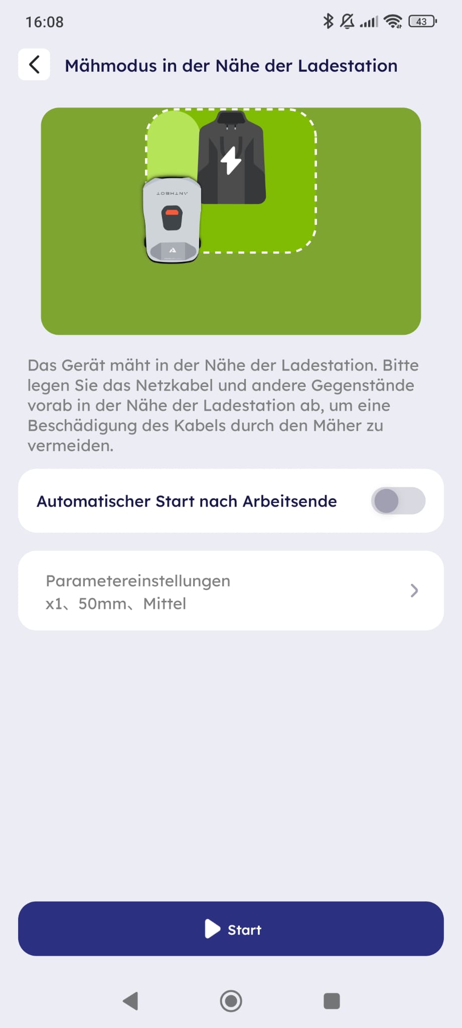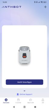 Nach der Installation der „Hardware“ und der Inbetriebnahme des Roboters in der Ladestation erfolgt die Einrichtung über die ANTHBOT-App. Die App ist eine wichtige Komponente für den Betrieb des Systems: Sie dient nicht nur der Kartierung des Geländes, sondern ist auch für die Steuerung zentraler Parameter notwendig – wie beispielsweise der Einstellung der Schnitthöhe sowie weiterer individueller Konfigurationen.