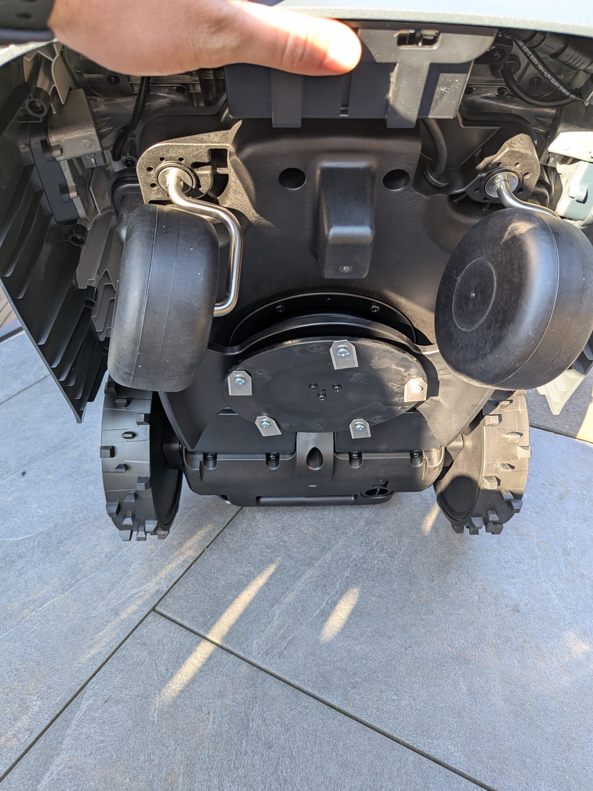 Das Herzstück, das Fünf-Klingen-Mähwerk, liefert ein überdurchschnittliches Schnittbild. Dass man die Bahnbreite und die Schnitthöhe so präzise per App steuern kann, ermöglicht eine Rasenpflege, die weit über das Standardmaß hinausgeht. Besonders beeindruckend ist die Kantenbearbeitung. Die Freiheit, zentimetergenau festzulegen, wie weit der Roboter über eine virtuelle Grenze hinausfahren darf, ist aktuell eine der besten Lösungen am Markt. Die Konstruktion mit Heckantrieb und leichten Vorderrädern unterstützt dieses Ergebnis, da das Gras nicht vorab plattgedrückt wird. Dass der Roboter selbst mit „Wiesen-ähnlichen“ Zuständen und hohem Gras im Test mühelos fertig wurde, zeigt die Kraft des Antriebs.