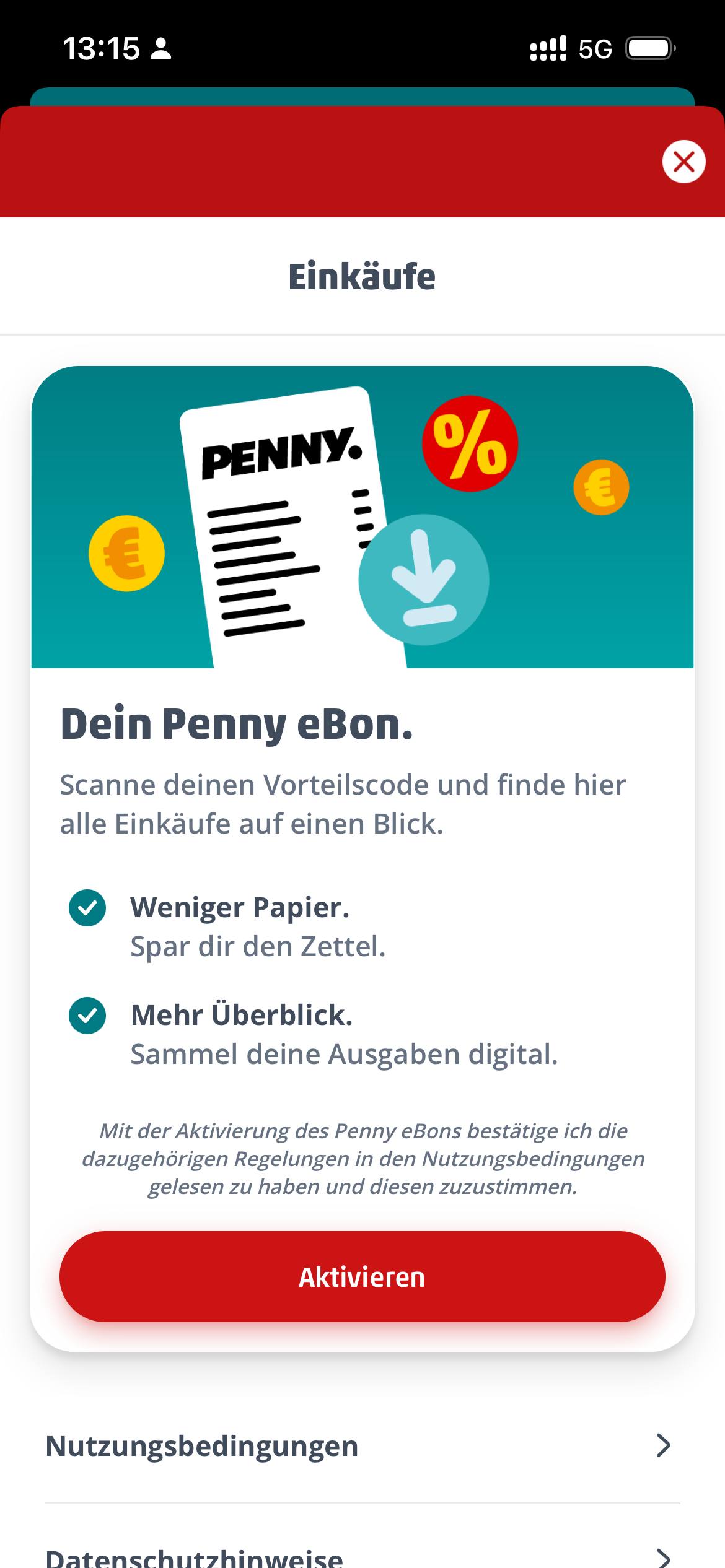 Standardmäßig ist die Funktion nicht aktiv. Sie muss in der PENNY App zunächst eingeschaltet werden. Erst danach werden neue Einkäufe digital erfasst.