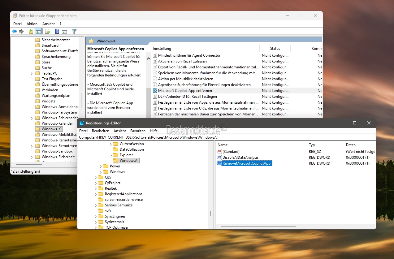Für eine Deinstallation über die Gruppenrichtlinien oder über die Registry gibt es aber Vorgaben, die erfüllt sein müssen.
