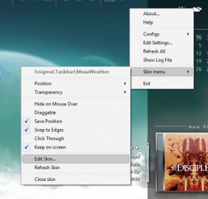 - Wenn Rainmeter aktiv ist, Rechtklick auf das Icon in der Taskleiste -> Configs -> Dein Theme, hier Enigma -> Dann gibts die Sidebars und die Taskbar und in den Untermenüs ein Objekt auswählen.
