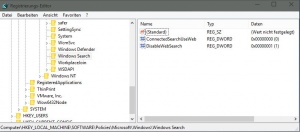 - Im rechten Fenster nun ein Doppelklick auf ConnectedSearchUseWeb und den Wert auf 0 stellen.