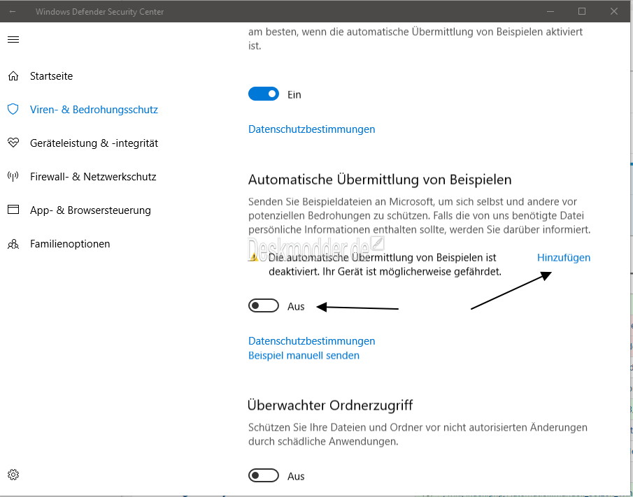 Datei:Automatische Uebermittlung von Bespielen Hinzufuegen Windows 10 Defender.jpg