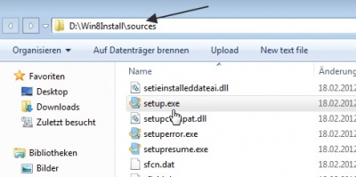 - Oder den Ordner öffnen und zu dem erstellten Ordner Win8Install\sources\Setup.exe gehen.